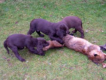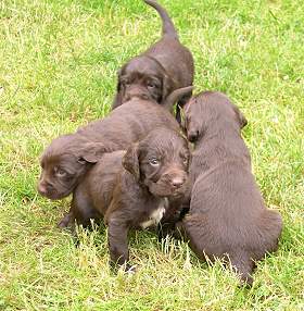 Am 10. Okt. 99 fiel der E-Wurf mit 1,8 braunen Welpen aus Annett nach Eddy von der Pfauheck.