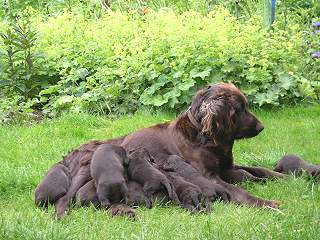 Hündin brachte am Ende Mai 2006 einen starken Wurf mit 6,4 braunen Welpen