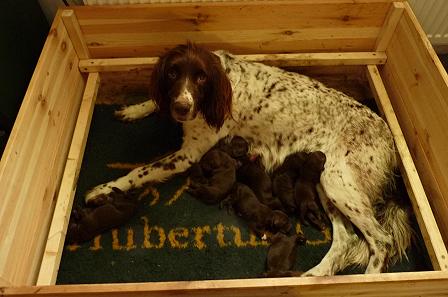 Olly vom Bärenhorst. Es wurden 4,5 braune Welpen aufgezogen. Heidi Nelha