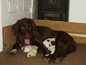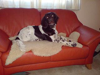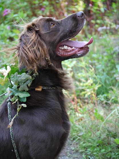 die Zucht. Die Hündin Pia kam als Welpe nach England und wurde dort auf den