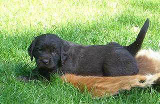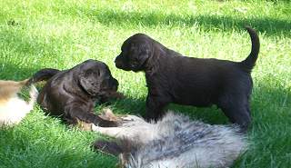 ![]() | ![]() erste Erfahrungen mit anderen Hunden.... | ![]() im Alter von 4 Wochen - ganz schön neugierig |
