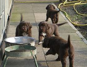 der B-Wurf aus Nixe nach Cliff von Linduri. Es wurden 4,5 braune Welpen
