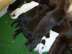 ![]() Tilia und die 2 Tage alten Welpen | ![]() | ![]() 14 Tage alt |