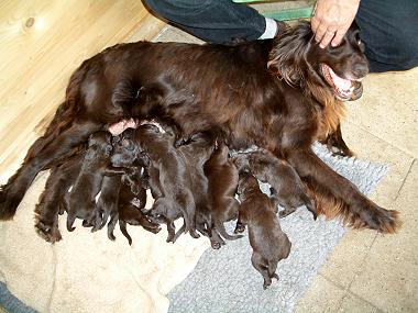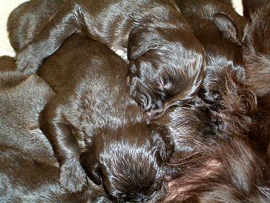 Am 20.10.2011 fiel der A II - Wurf mit 4,4 Welpen aus Tilia Nelha nach dem rein braunerbigen Rüden Dago von Heek.
